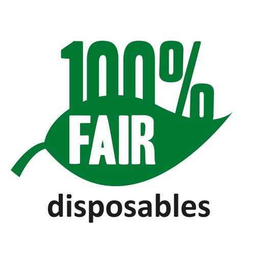 Vanuit de markt is er steeds meer vraag naar duurzame en verantwoorde producten. Ook de markt voor disposables verandert hierdoor. Meer en meer worden overgegaan op duurzame alternatieven voor de standaard plastic disposables. Door kritisch te zijn op wat we gebruiken en als organisatie mee te bewegen met de markt kunnen we bijdragen aan deze verduurzaming! Met onze 100% FAIR lijn kiest u voor duurzaam! Al onze producten uit deze lijn zijn geproduceerd van papier en voorzien van het 100% FAIR logo. Deze producten zijn biologisch afbreekbaar en hebben een zo klein mogelijke impact op ons milieu. Wanneer u kiest voor producten uit onze 100% FAIR lijn werken we samen toe naar een beter milieu en verkleinen de impact op het milieu!